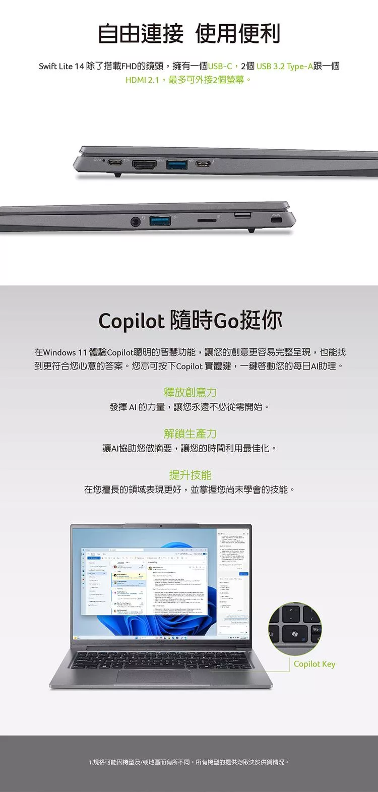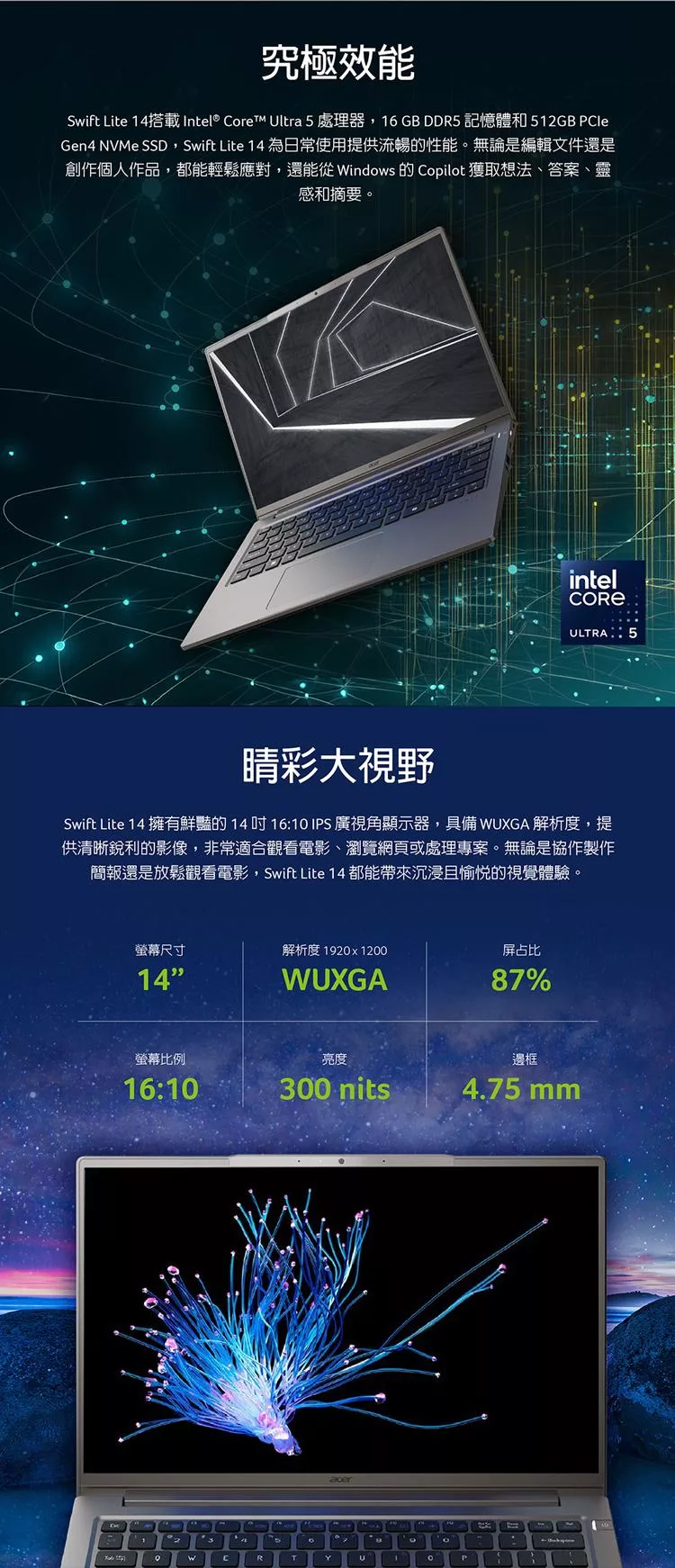 ★硬碟升級★ ACER 宏碁 Swift Lite 14 SFL14-54M-71C8 14吋 筆電 特仕版 (CU7-155H/32G/512G+1TB/W11)