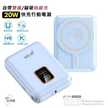 E-books B100【台灣製造】自帶雙線LED數顯20W快充版行動電源37Wh 藍