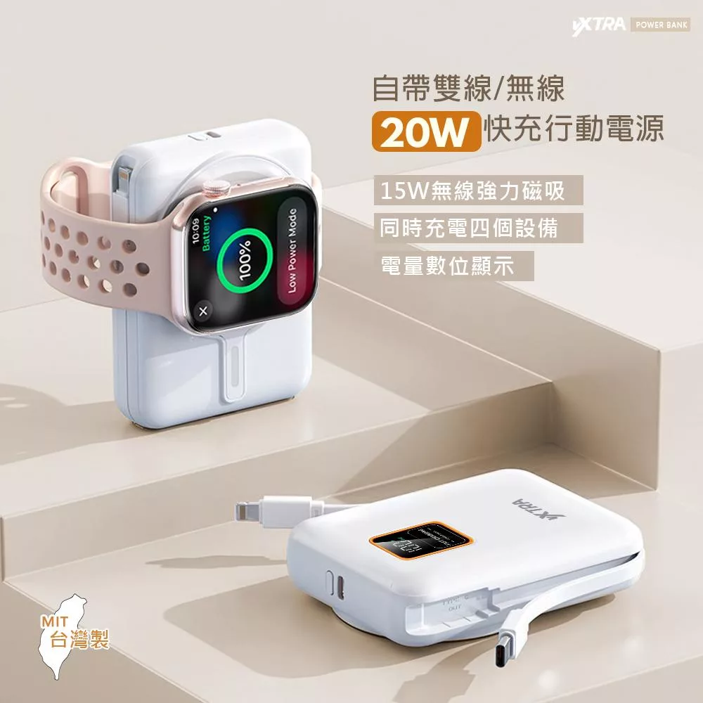 E-books B100【台灣製造】自帶雙線LED數顯20W快充版行動電源37Wh 奶茶