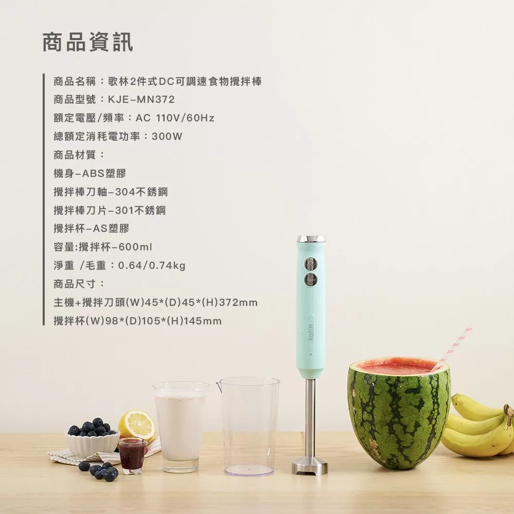 【Kolin 歌林】2件式DC可調速食物攪拌棒KJE-MN372