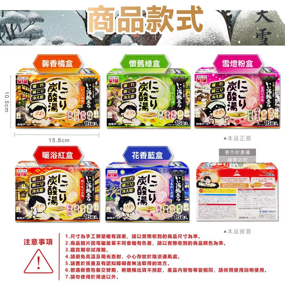 日本白元名湯之旅溫泉入浴劑25gx12包/紅盒 (4種香味湯色/柚子茶.櫸木.紅楓.愛媛柑橘)