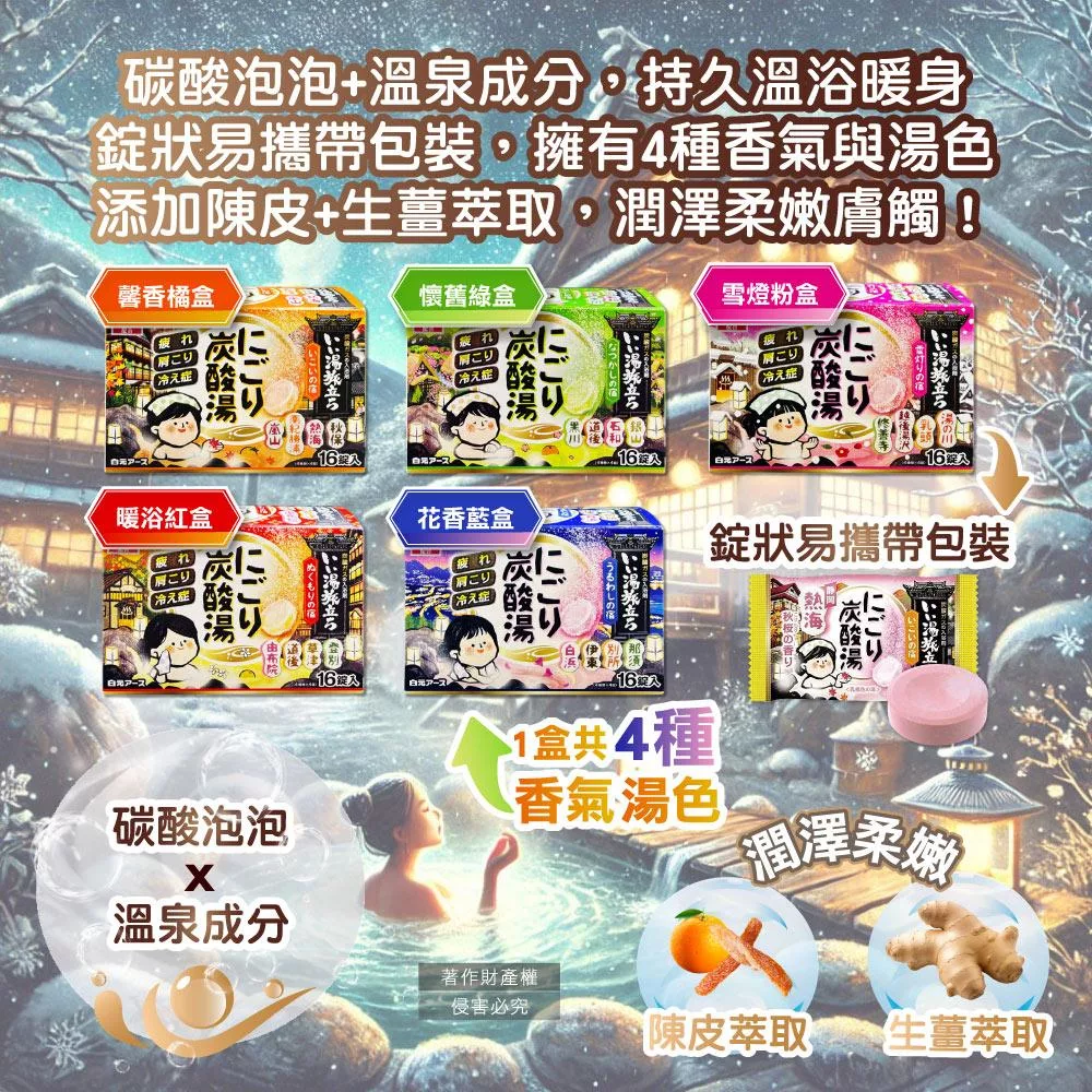 日本炭酸入浴劑(公主花香/草本花香/清新葉香/水果氣泡 )16錠