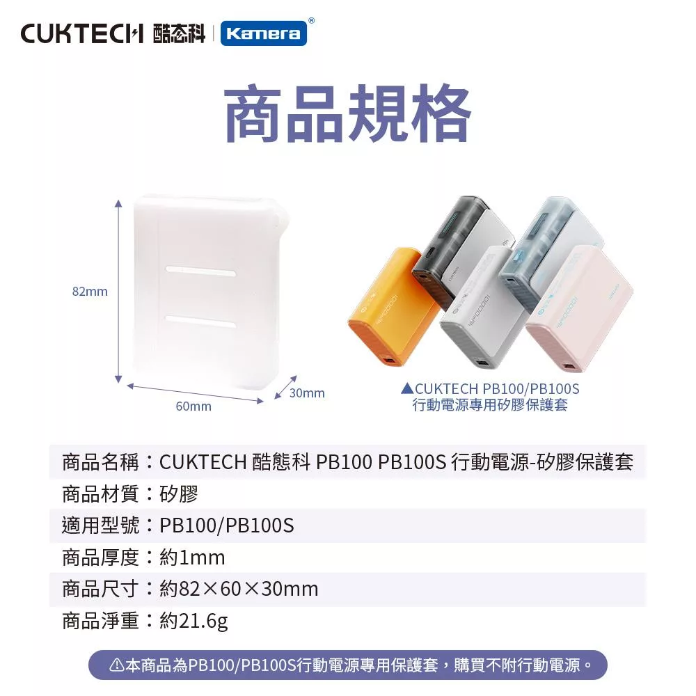 1. PB100/PB100S行動電源專用,1:1完美貼合 2. 高質感矽膠材質 防刮耐磨 3. 手感細膩親膚 完整保護行動電源 4. 側邊可掛吊飾 電源狀態透明可見 5. 當日下單隔工作日快速出貨