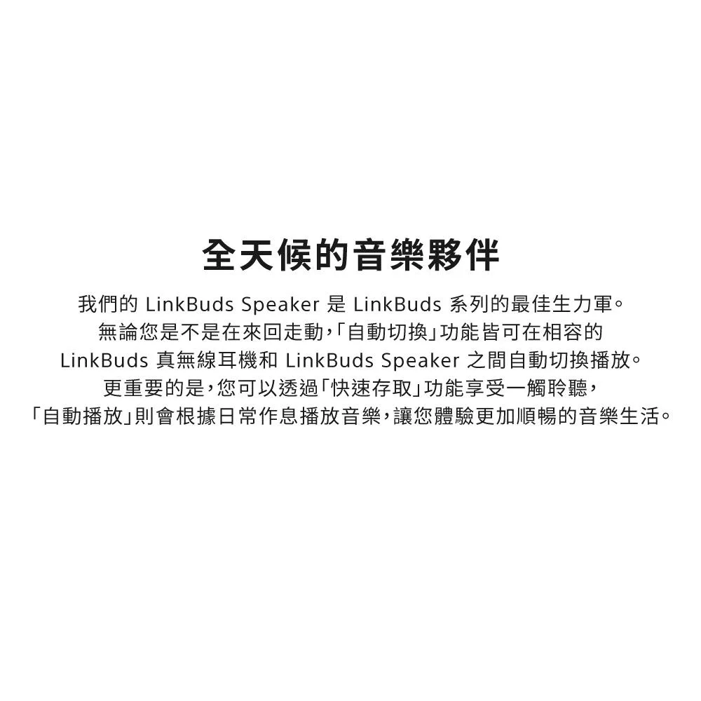 l 快速撥放(Quick Access): 快速撥放功能讓您不用拿起手機、只需要在LinkBuds Speakers