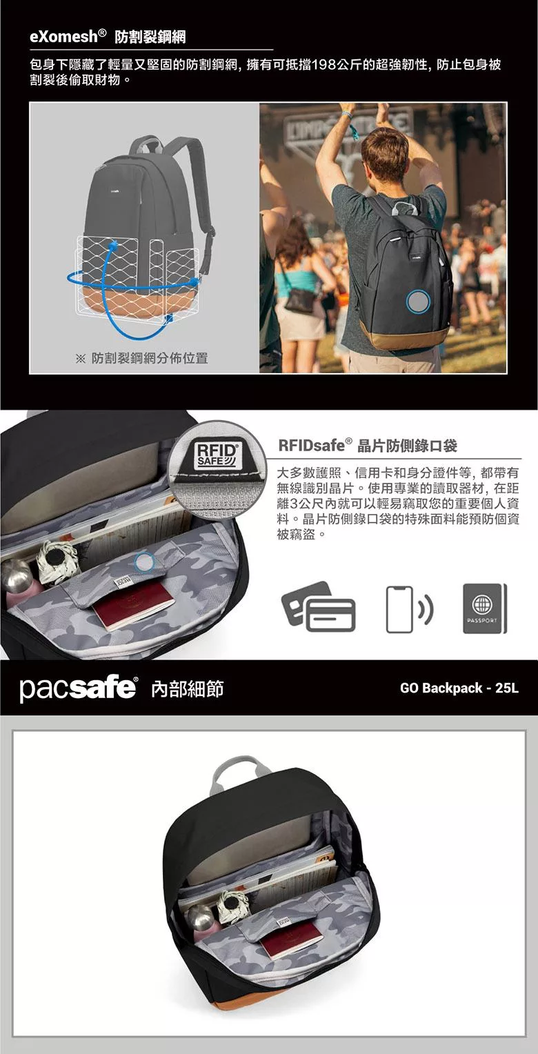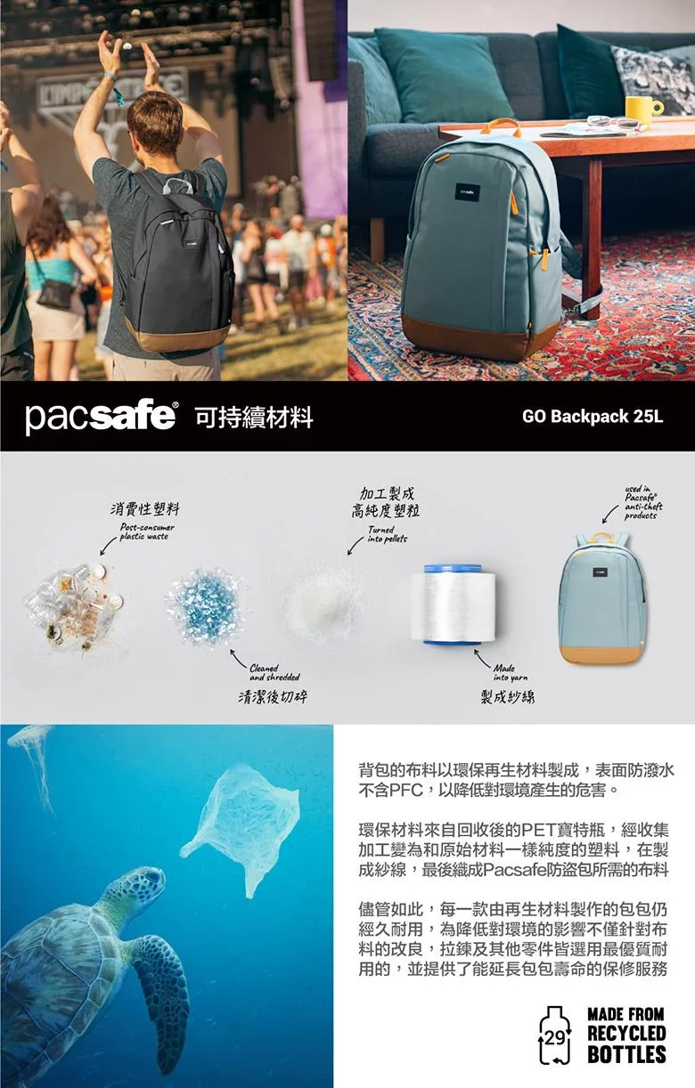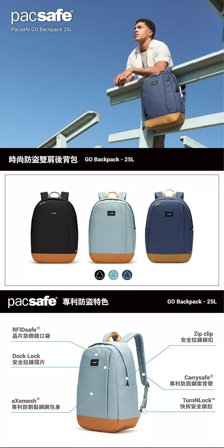 Pacsafe® GO 專利防盜後背包 15L 黑色