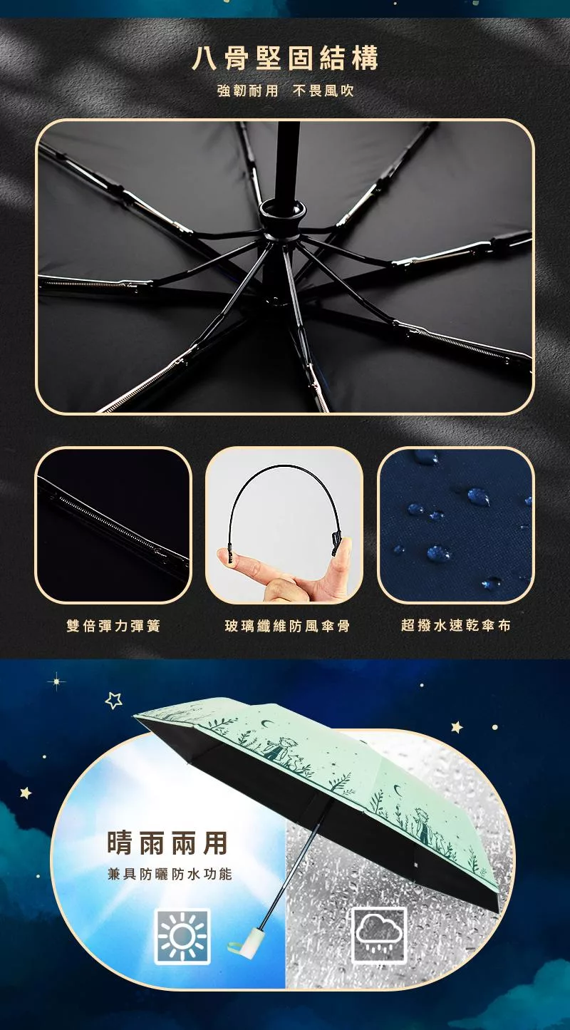 【好拾選物】扣環反向自動勾勾傘/折疊傘/遮陽傘 - 星空黑