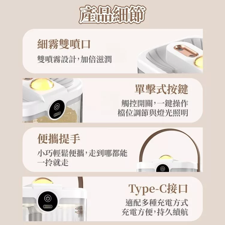 【H2O】療癒蘑菇頭拍拍燈加濕器 隨機加贈花果香精油1瓶 白色