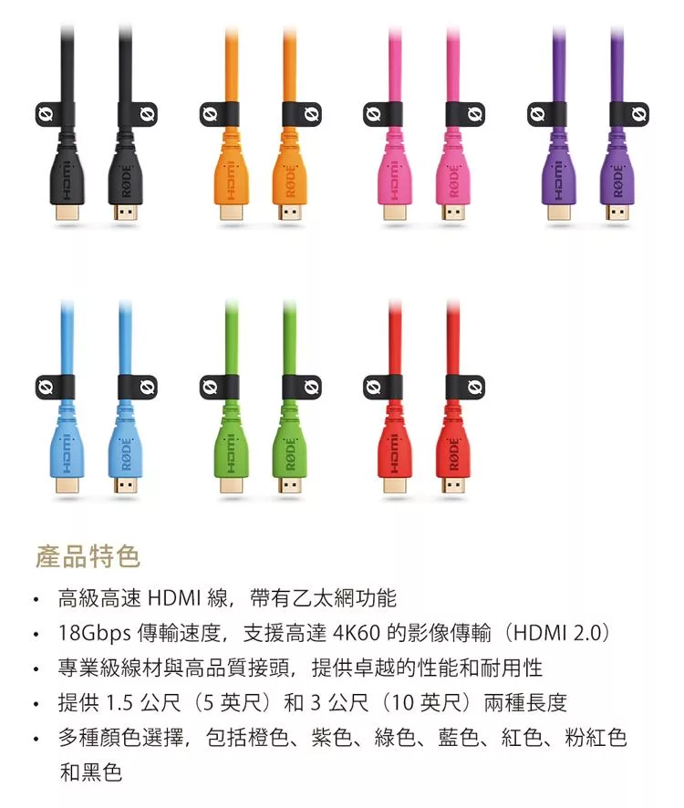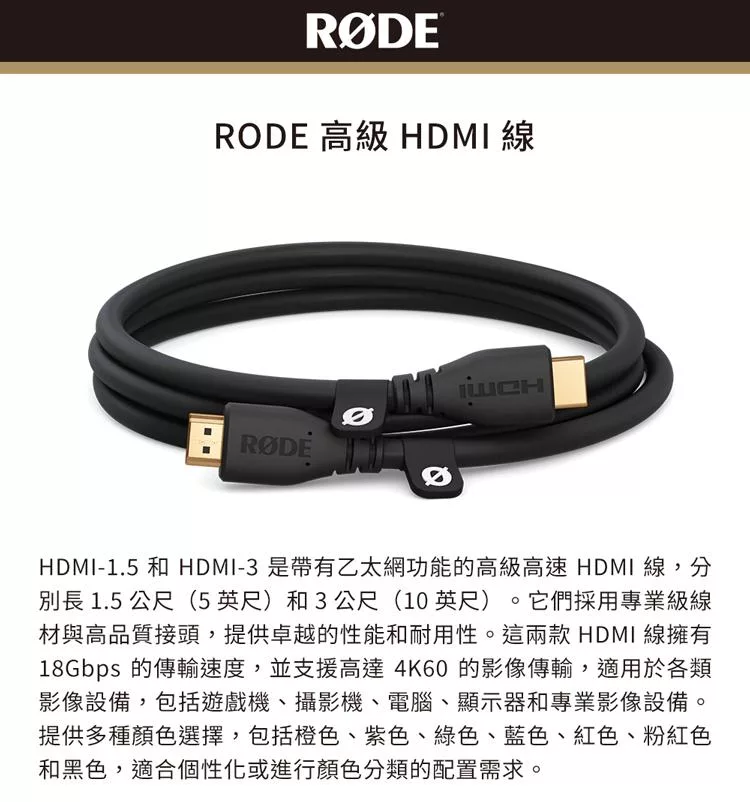 【RODE】高級HDMI線 1.5公尺 公司貨 黑色