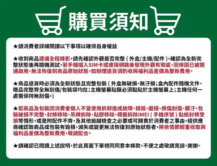 當您於此頁面下單表示您了解並同意下述規範,請注意!