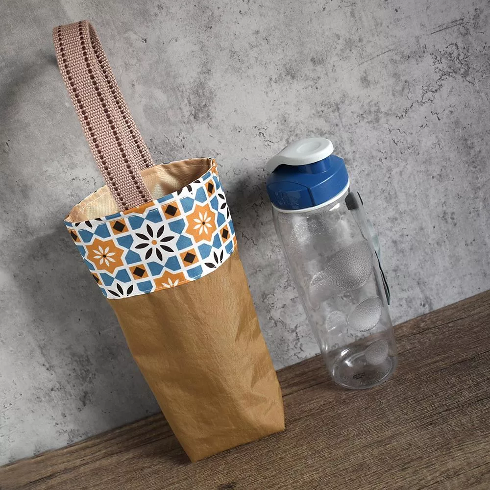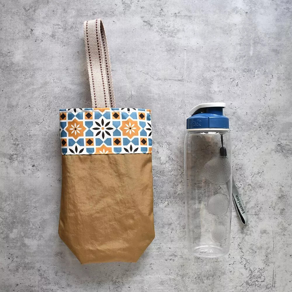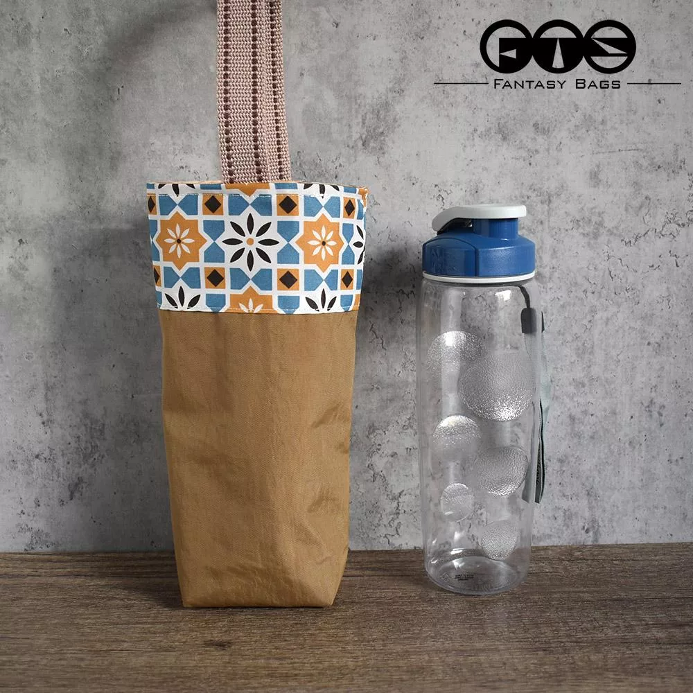 《梵緹希》防水外出手水瓶提袋_ 花磚橘+卡其底