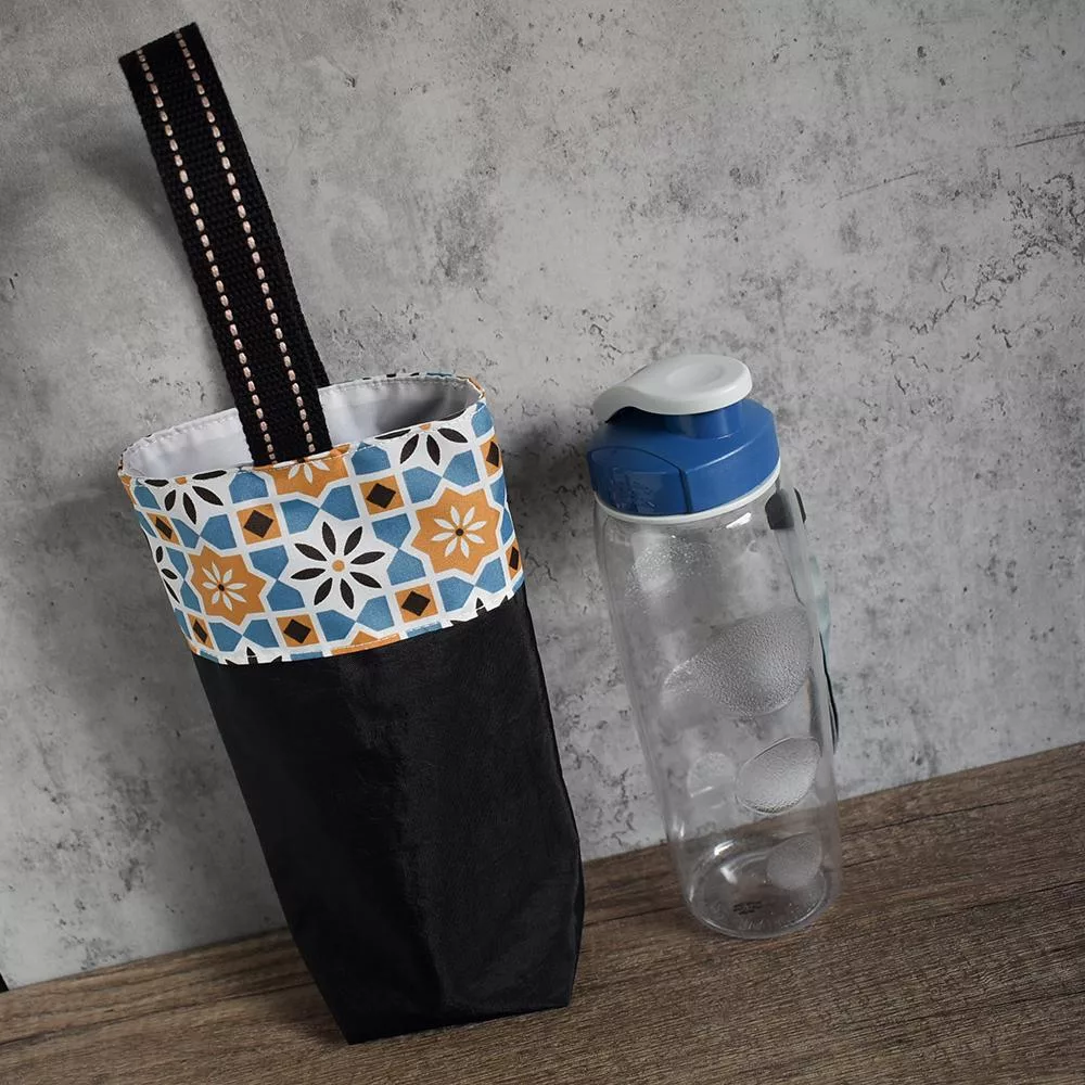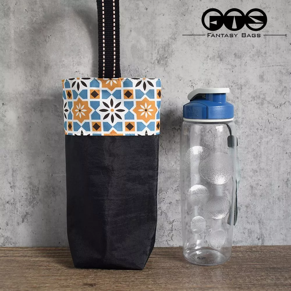 《梵緹希》防水外出手水瓶提袋_ 花磚橘+黑底