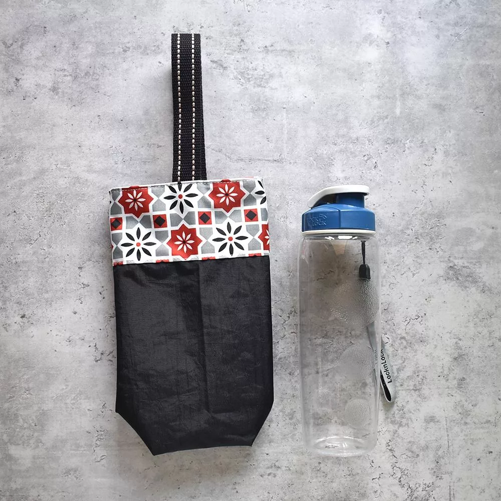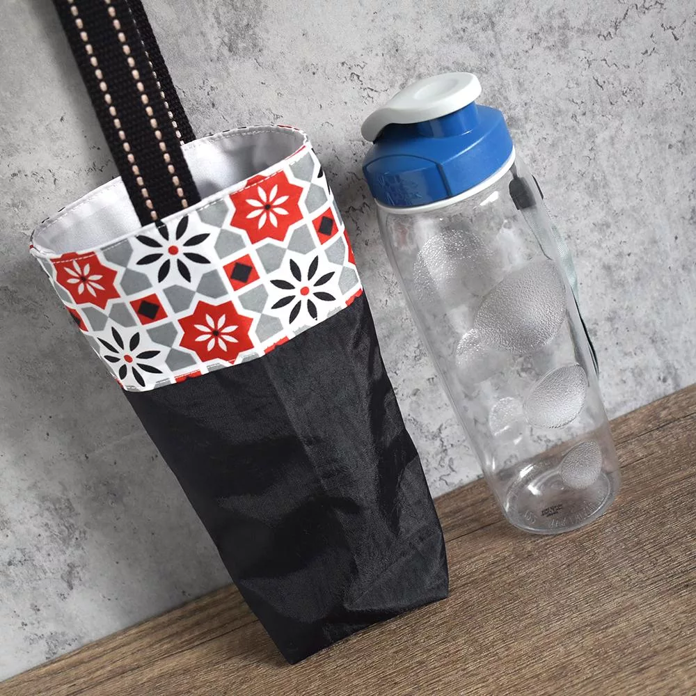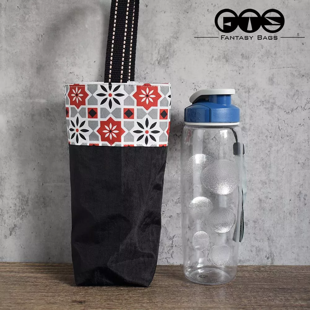 《梵緹希》防水外出手水瓶提袋_ 花磚紅+黑底