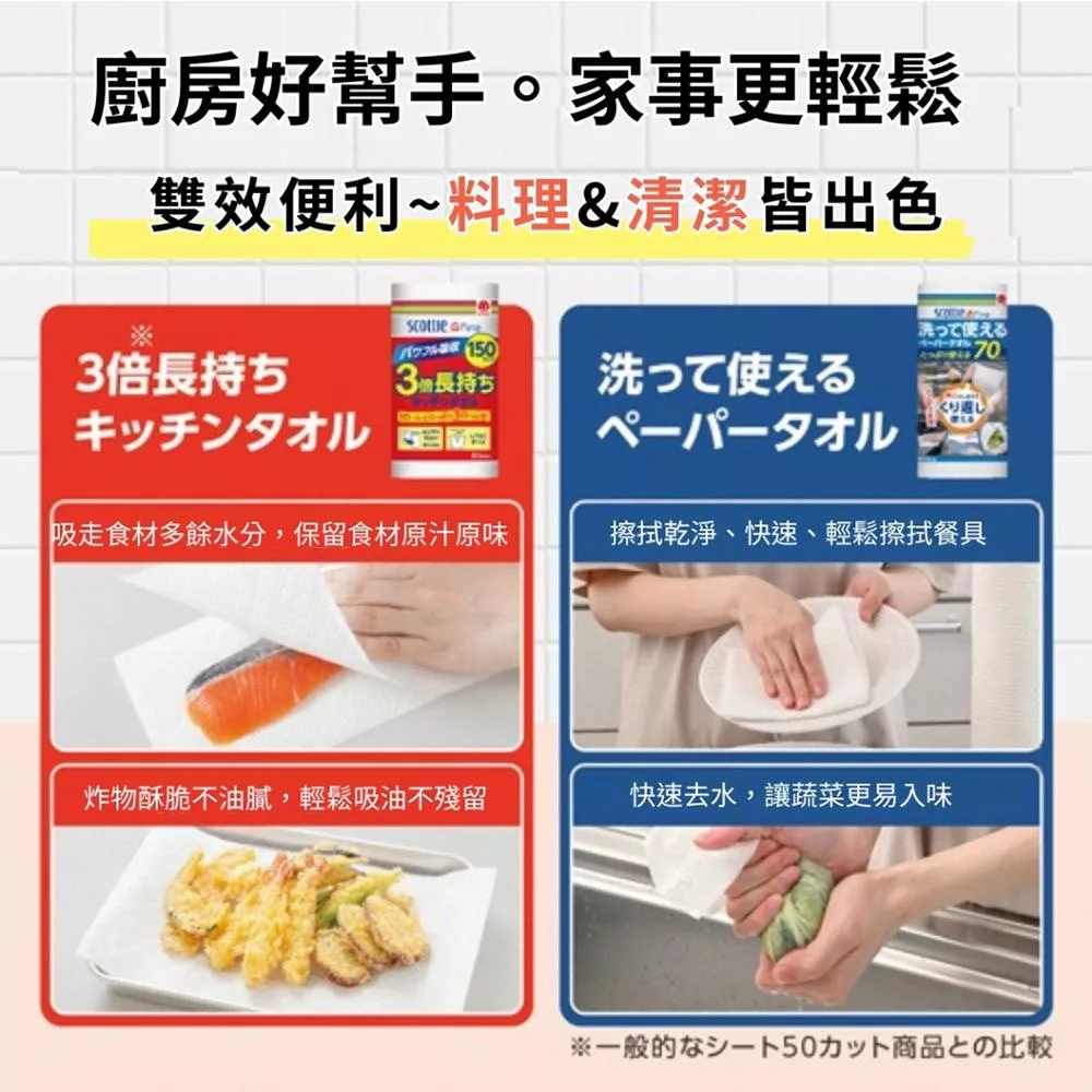 每張紙巾都擁有優越的濕強度與吸附力,不僅耐濕不易破損,更能快速吸附水分與油脂,是廚房清潔與料理的得力助手。