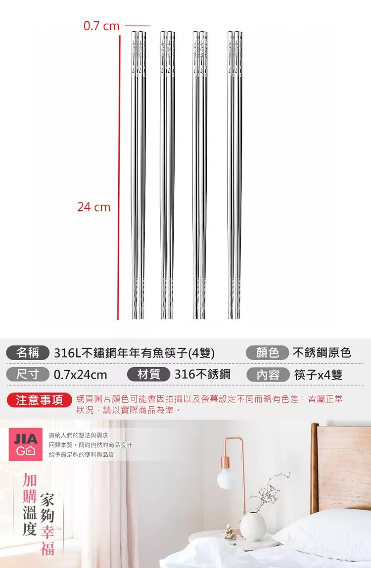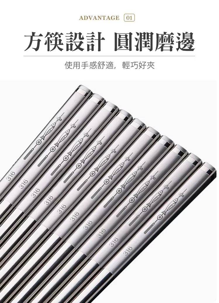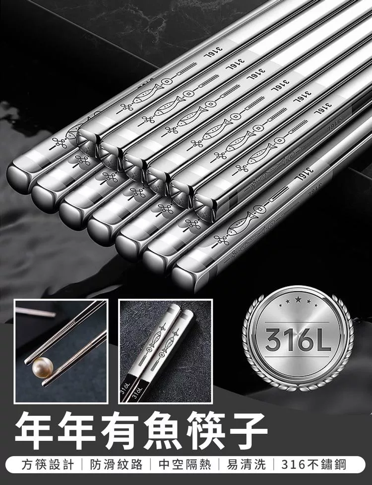 【E.dot】316L不鏽鋼年年有魚筷子 -4雙組