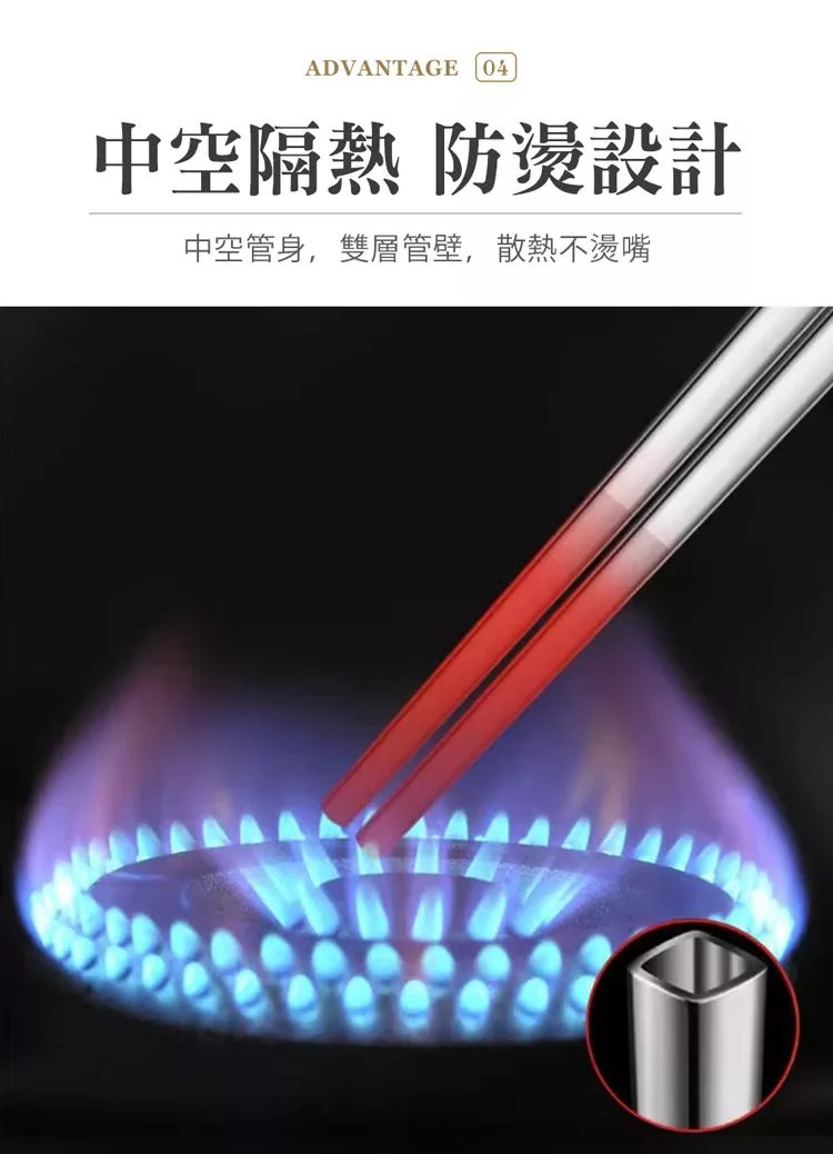 【鈦工坊TiKOBO】純鈦方形空心筷 鈦方財筷23公分(長款)
