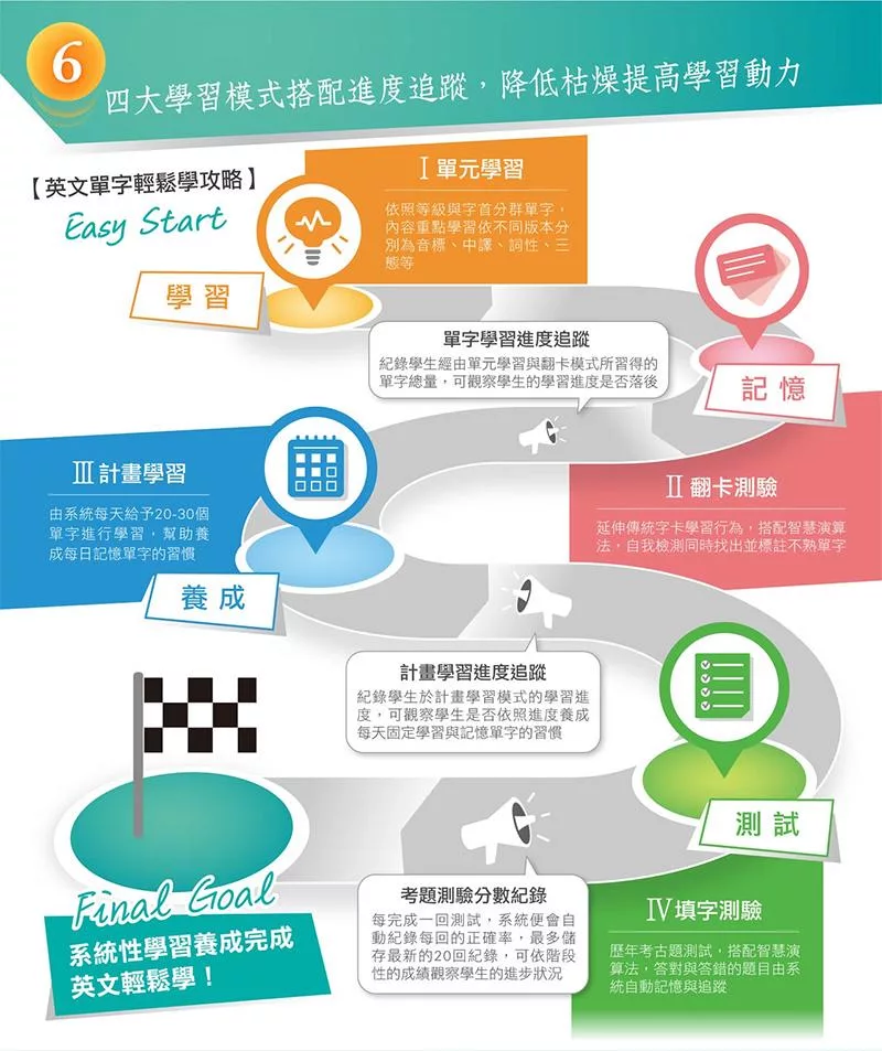 透過單元學習與計畫學習兩種模式,建立天天學習單字的習慣,記得多且記得久