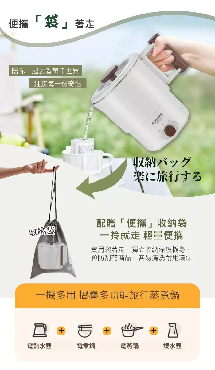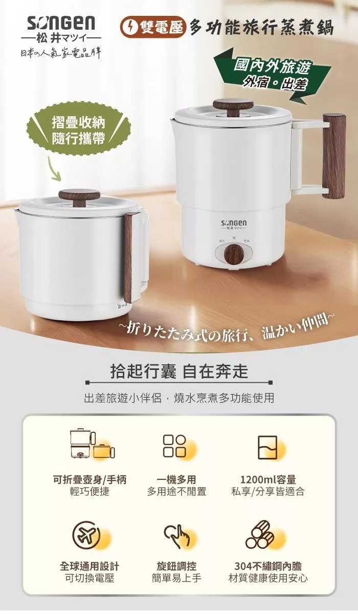 【日本SONGEN】松井雙電壓多功能旅行便攜式摺疊蒸煮鍋