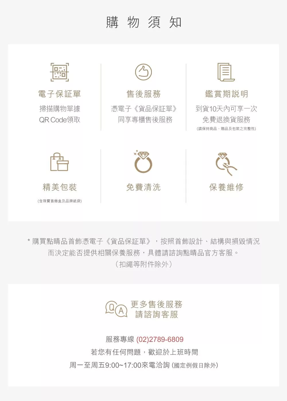 (4) 本體、配件、贈品、保證書、原廠包裝及所有附隨文件或資料的完整性。