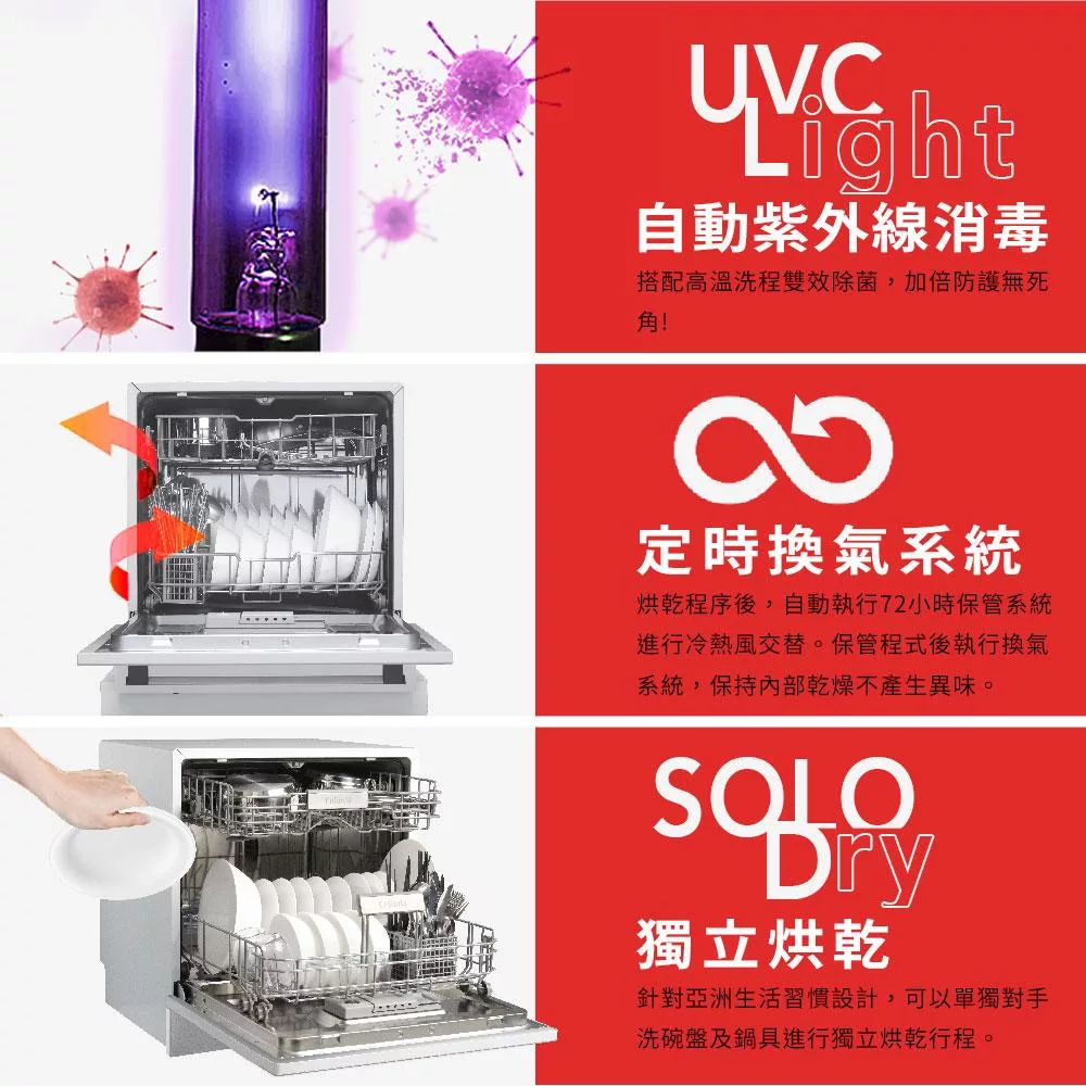 【SAKURA 櫻花】16人份九段洗程獨立式嵌入兩用熱風烘乾洗碗機(E7881)北北基以外縣市另外付安裝費