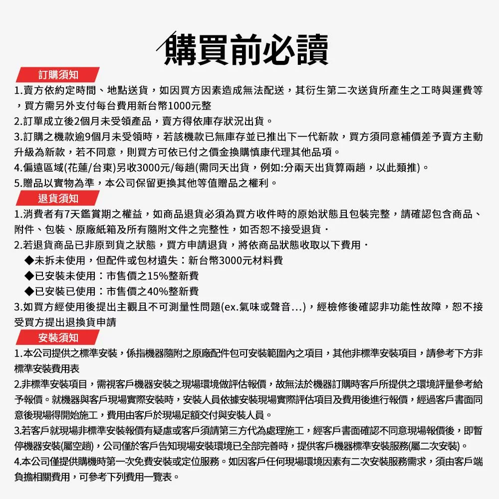 當您於此頁面下單表示您了解並同意下述規範,請注意!