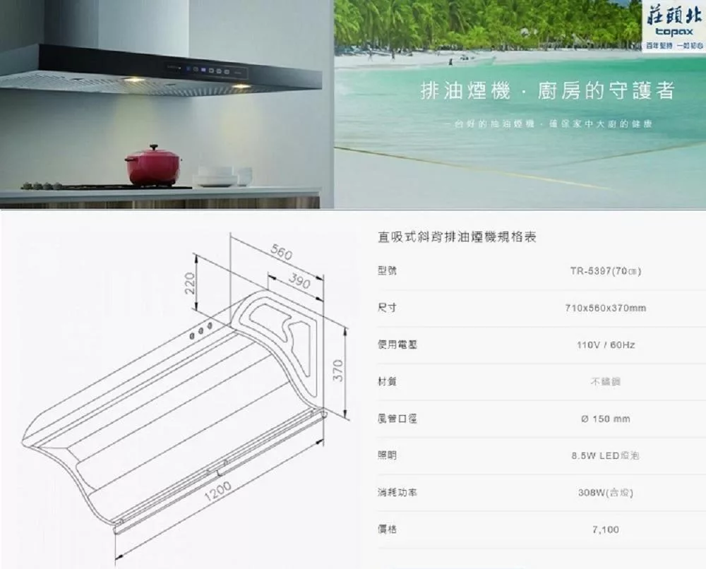 莊頭北 倒T歐化排油煙機 TR-5898(90cm) 送基本安裝