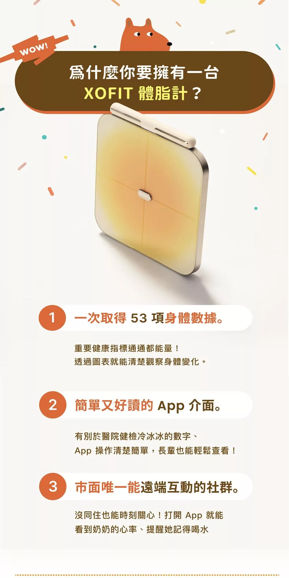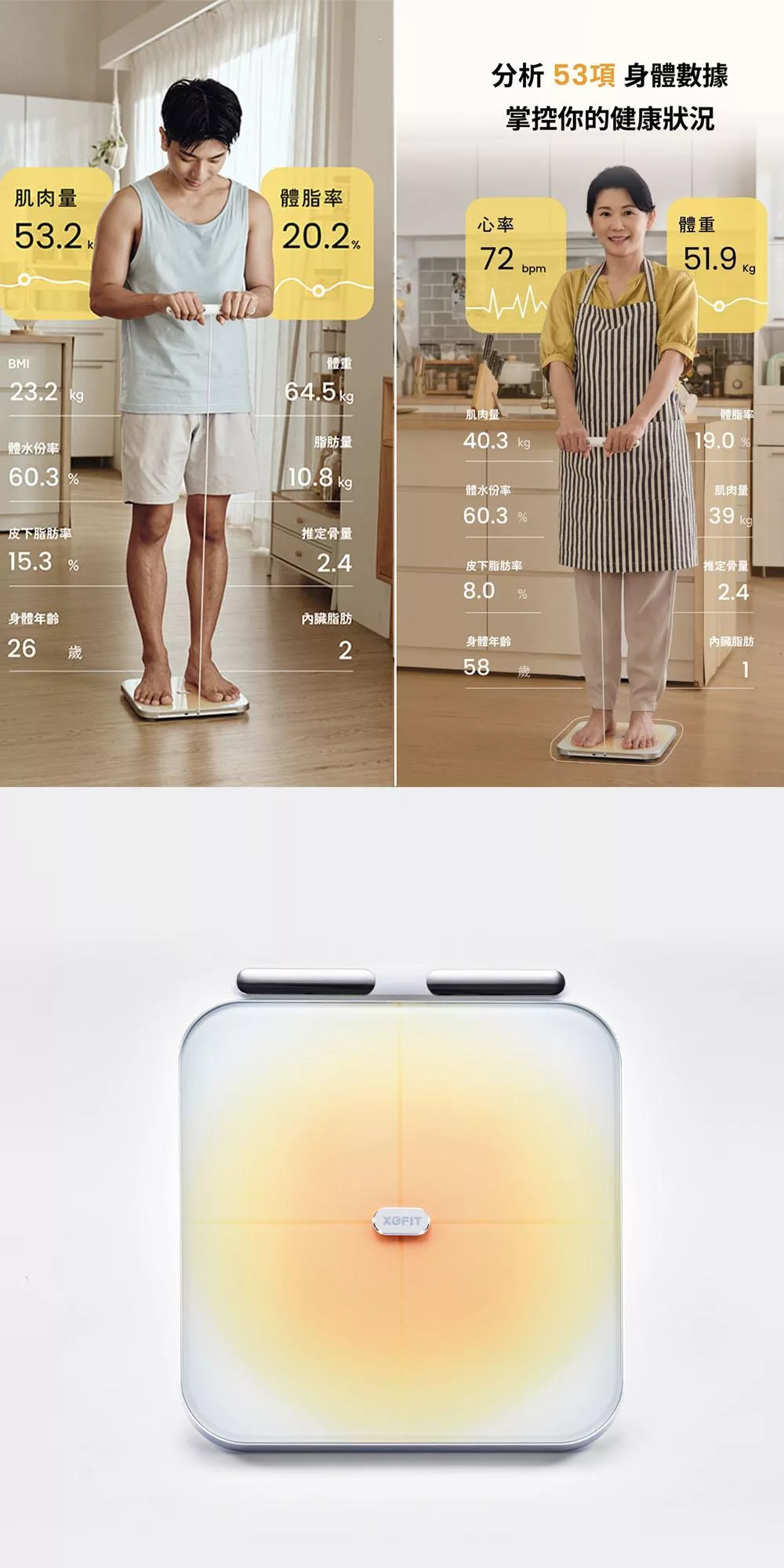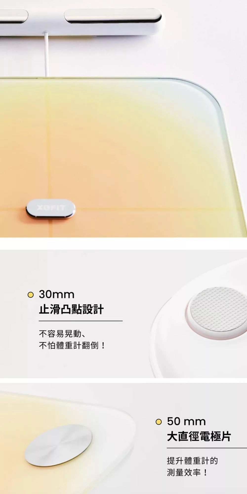 XOFIT 機身採用極簡工藝設計,暖黃色的漸變噴漆,搭配鋼化玻璃表面,給雙腳最佳的踩踏觸感。