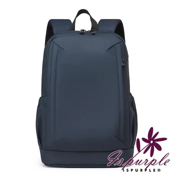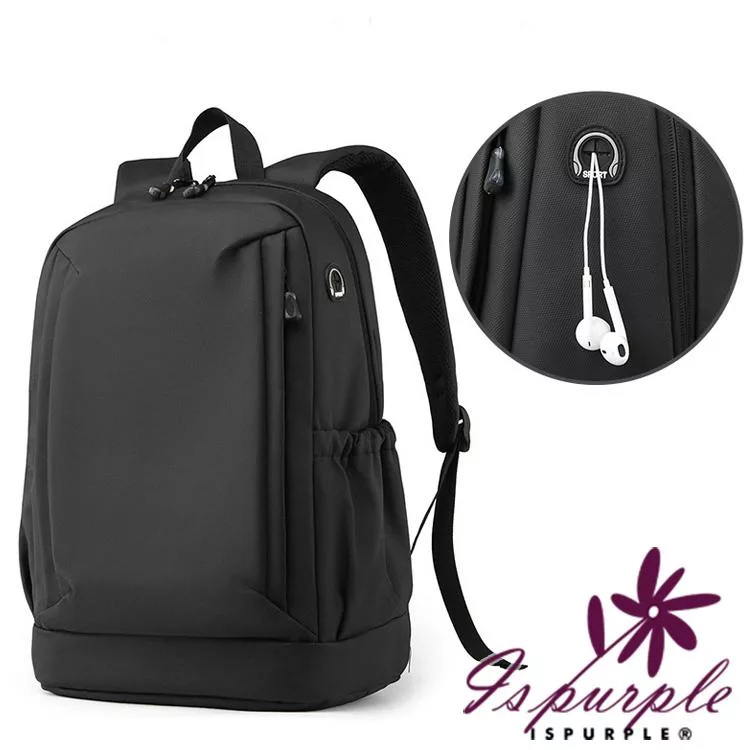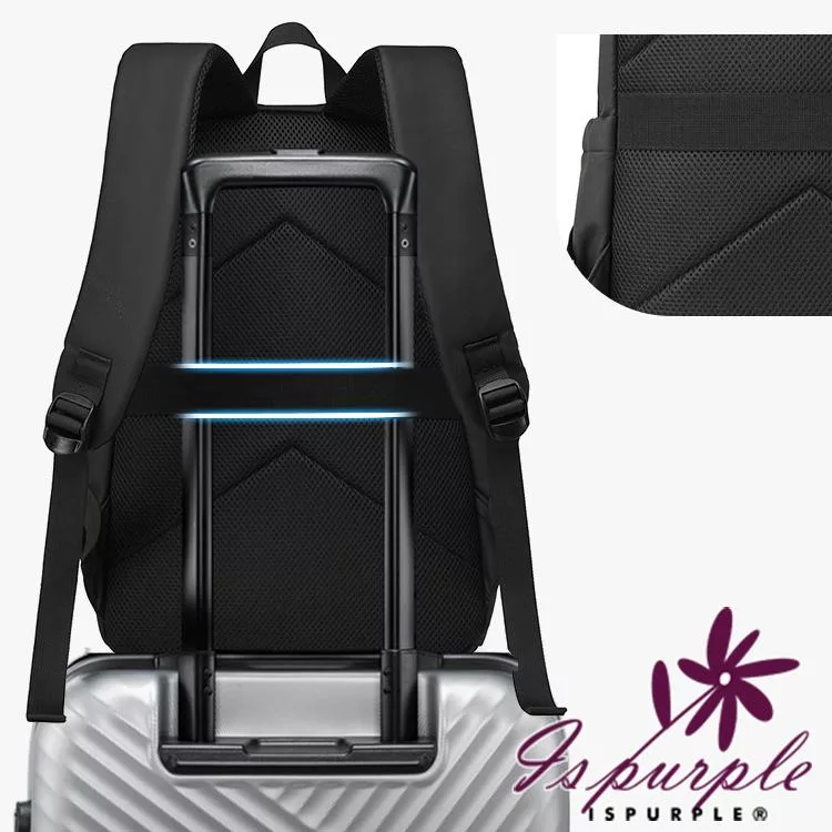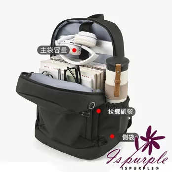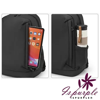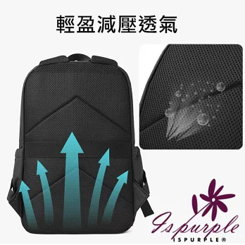 【iSPurple】時尚休閒 商務出差14吋反光條雙肩電腦包/黑 黑