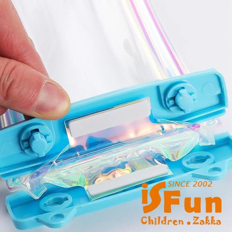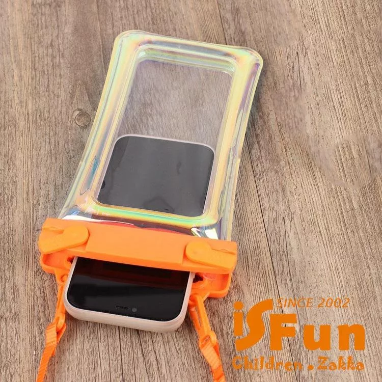 【iSFun】夏日戲水*果凍鐳射漂浮氣囊透明手機防水保護套/ 藍色+隨機色
