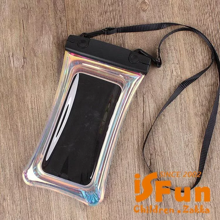 【iSFun】夏日戲水*果凍鐳射漂浮氣囊透明手機防水保護套/ 黑色+隨機色