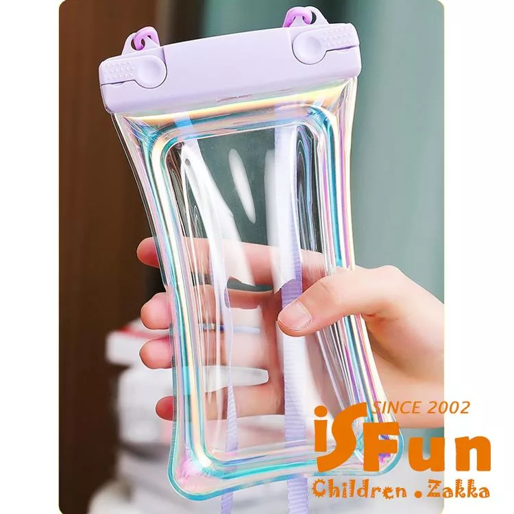 【iSFun】夏日戲水*果凍鐳射漂浮氣囊透明手機防水保護套/ 紫色+隨機色