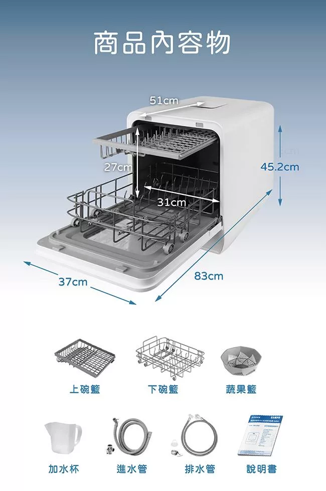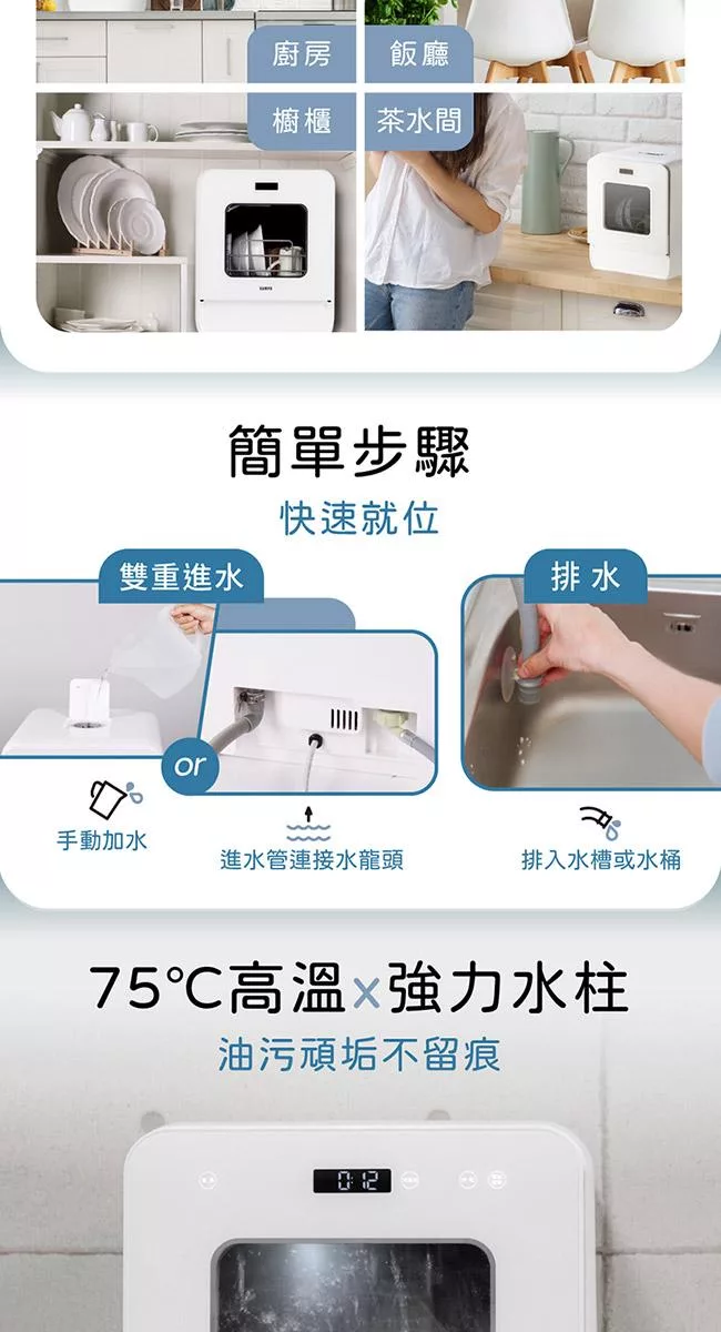 【only】高CP款8-9人份桌上型智慧洗碗機OKD08-M22美型白(獨立式/可嵌入/雙層更好用/不含安裝)