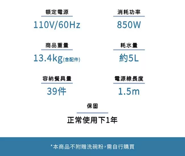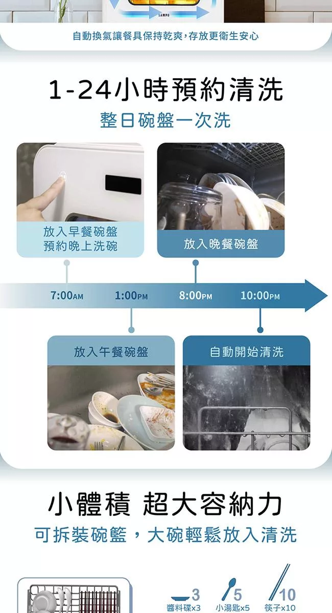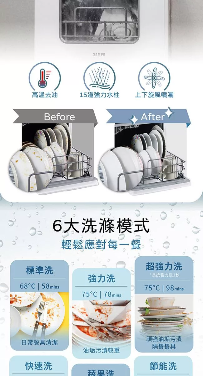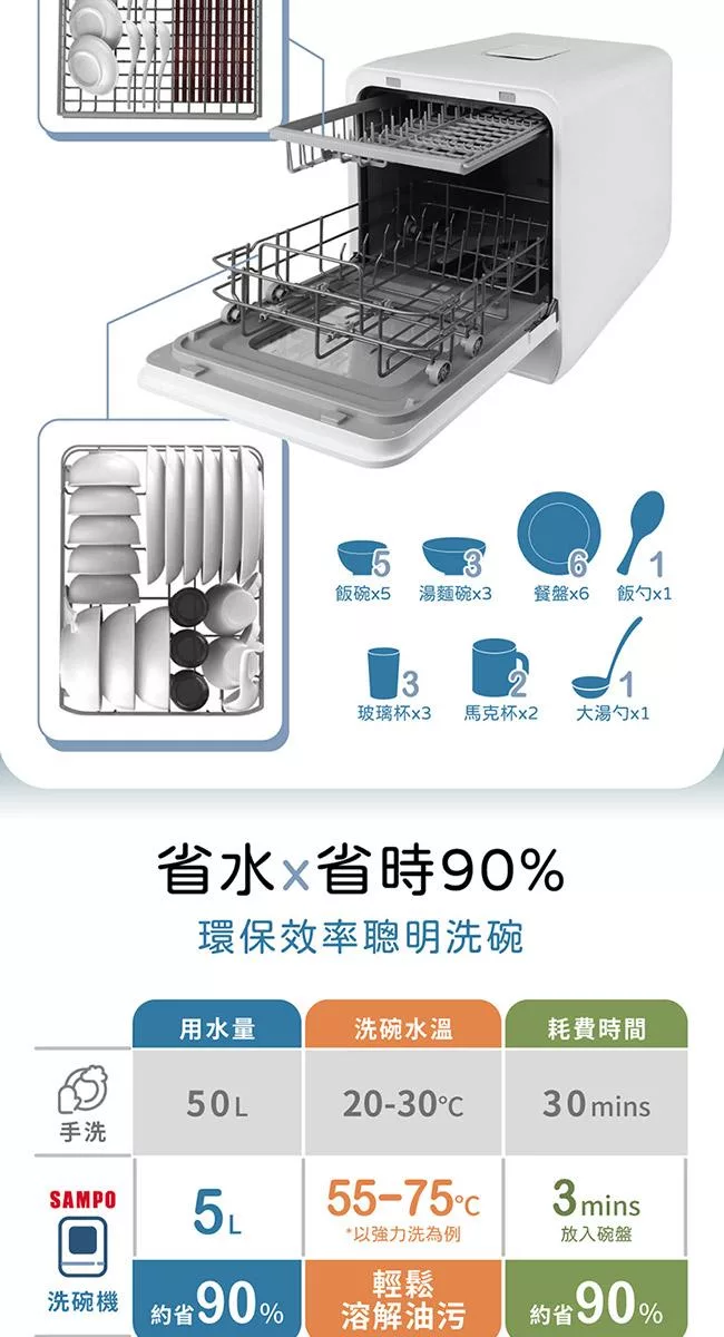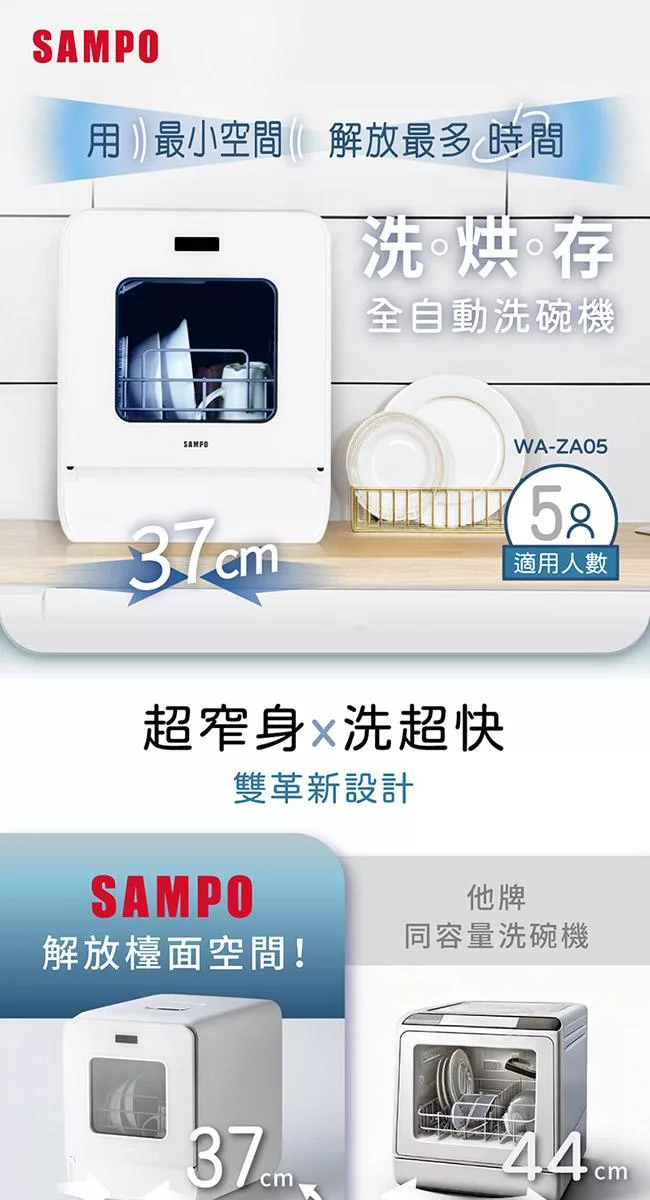 SAMPO聲寶 5人份窄速洗3in1全自動洗碗機 WA-ZA05