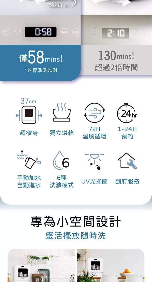 【only】高CP款6-8人份桌上型智慧洗碗機OKD06-M22美型白(獨立式/可嵌入)