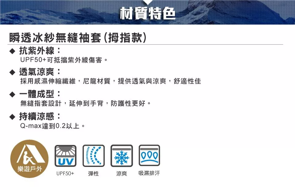 防曬透氣/吸濕排汗/彈性舒適/登山健行/單車運動配件