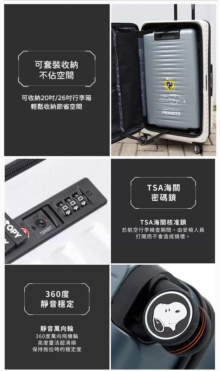 SINDIP 前開式28吋行李箱(靜音雙排飛機輪+海關鎖+可加大+防盜拉鍊) 28吋 銀灰