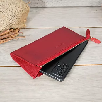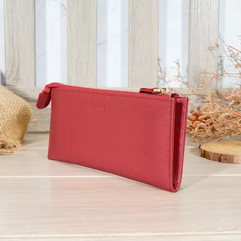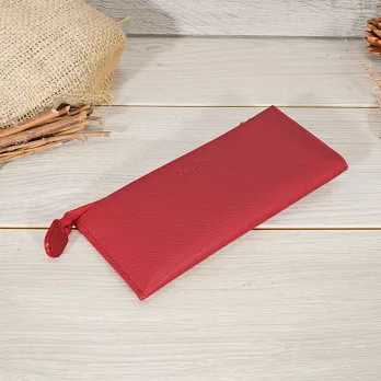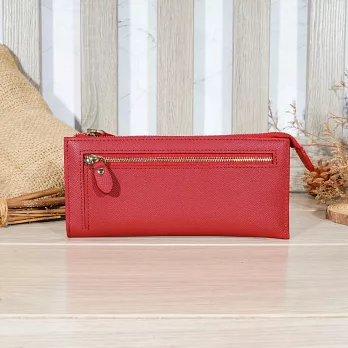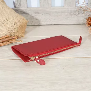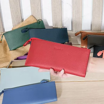 CHENSON真皮 18公分長夾第二代 超薄6卡翻蓋小長夾 (W26487-U) 豆沙紫