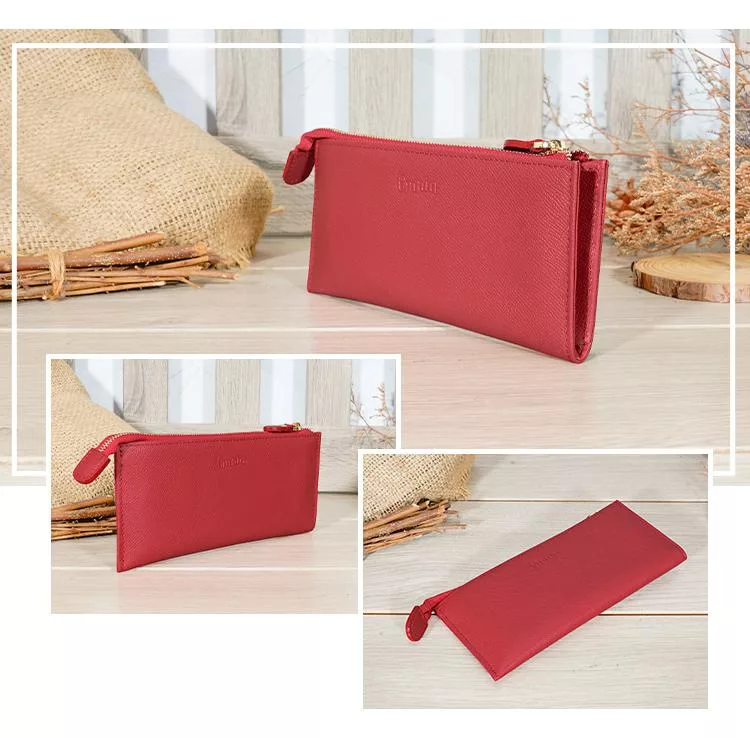 CHENSON真皮 超薄第五代 11卡長夾 內部附獨立零錢袋 (W25473-U) 豆沙紫