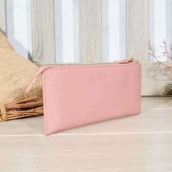 CHENSON真皮 18公分長夾第二代 超薄6卡翻蓋小長夾 (W26487-U) 豆沙紫