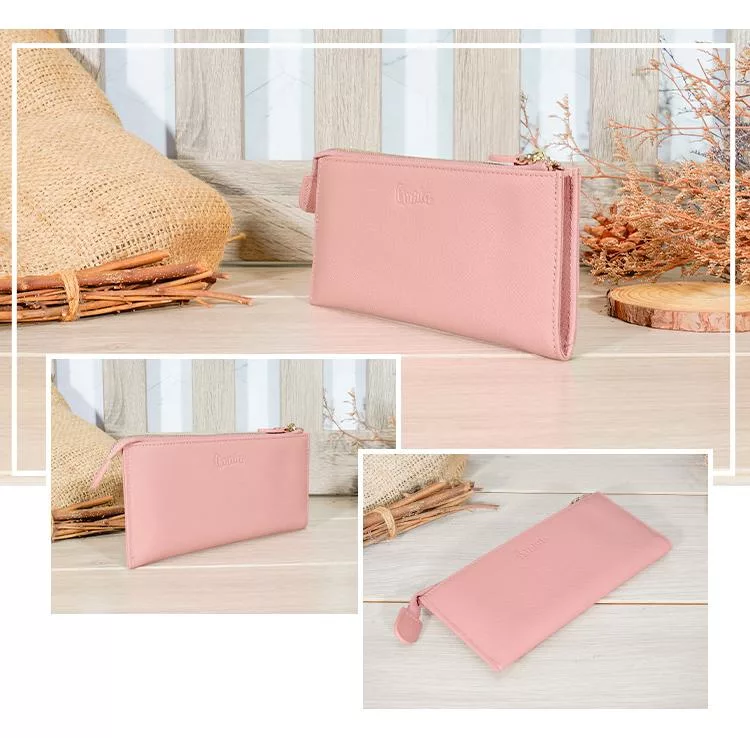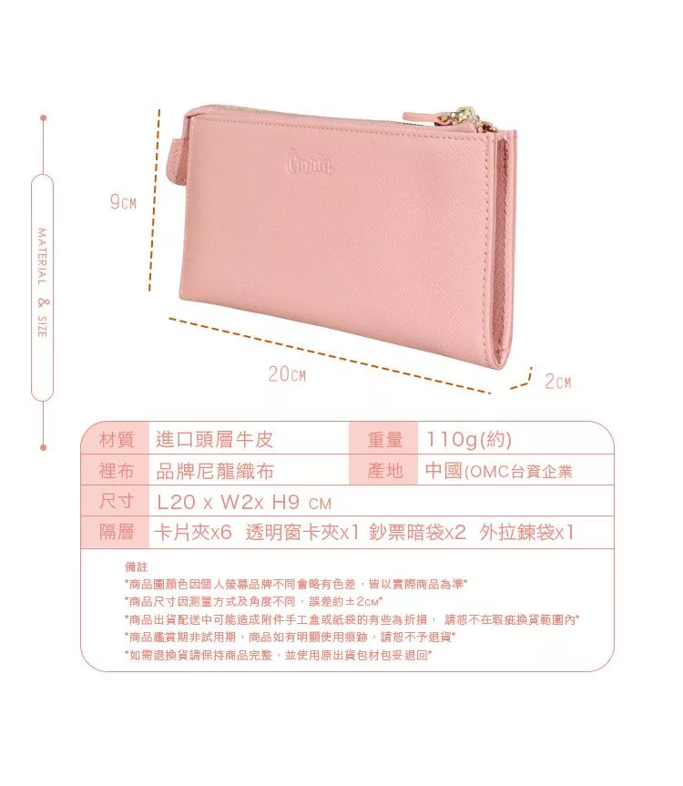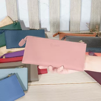 CHENSON真皮 超薄第五代 11卡長夾 內部附獨立零錢袋 (W25473-U) 豆沙紫