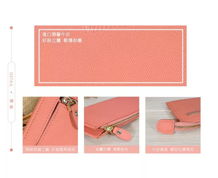 CHENSON真皮 超薄第五代 11卡長夾 內部附獨立零錢袋 (W25473-U) 豆沙紫