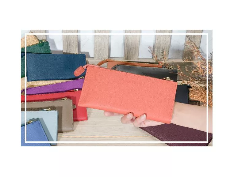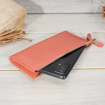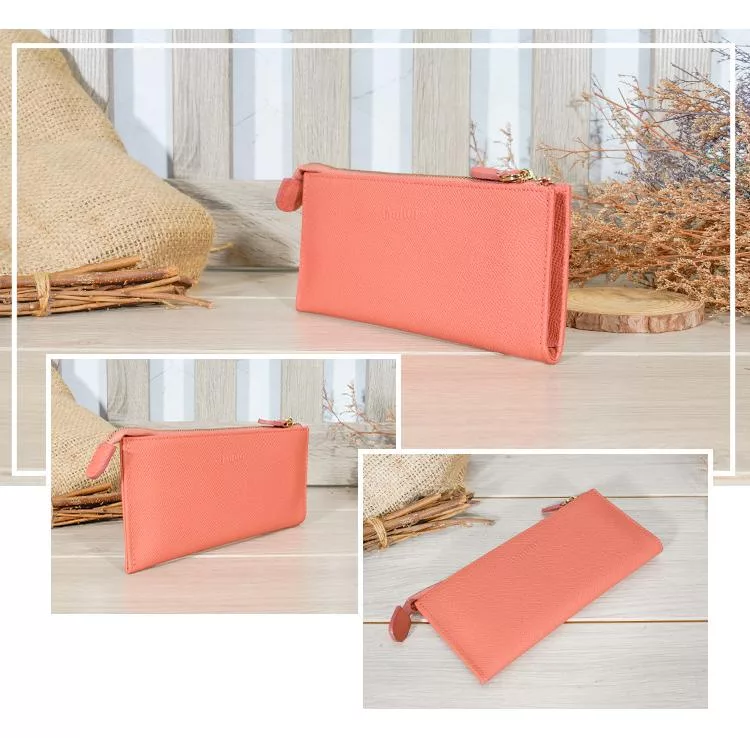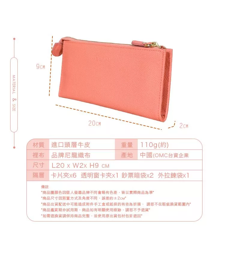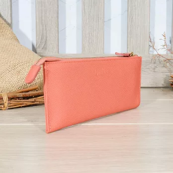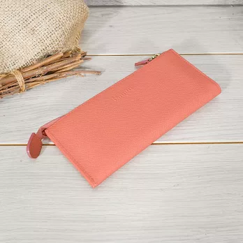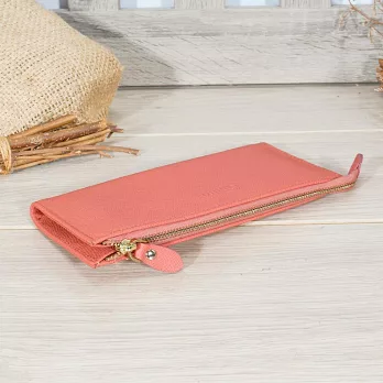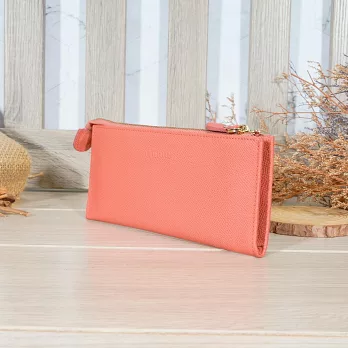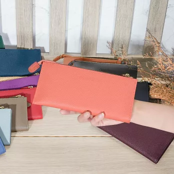 CHENSON真皮 18公分長夾第二代 超薄6卡翻蓋小長夾 (W26487-U) 豆沙紫