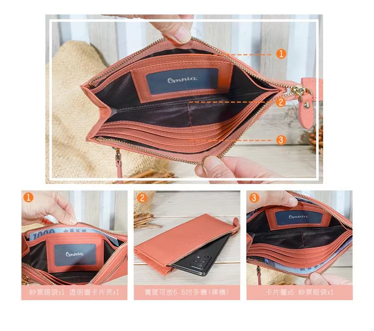 CHENSON真皮 6卡長夾式雙層手拿包 手機包附真皮手腕帶 可可棕(W25480-D)