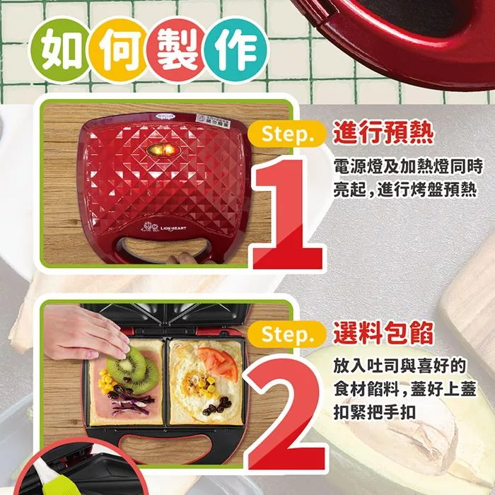.僅需將個人喜愛的食材均勻鋪平在吐司上,輕鬆不費力的烹調。