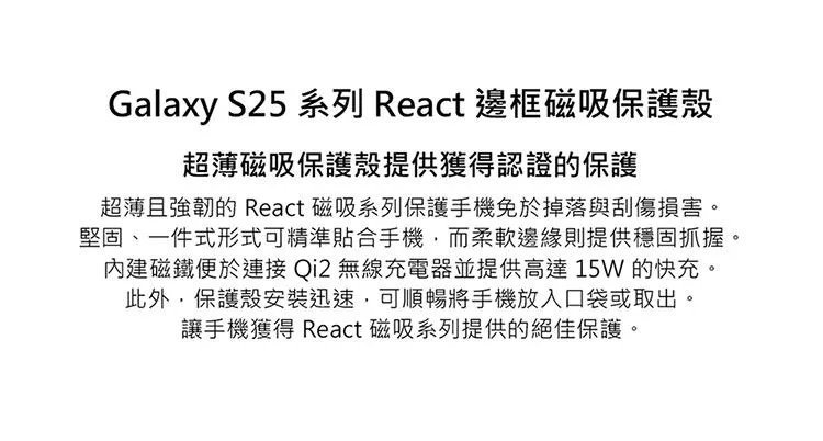 品名:Galaxy S25 Otterbox-React邊框磁吸保護殼