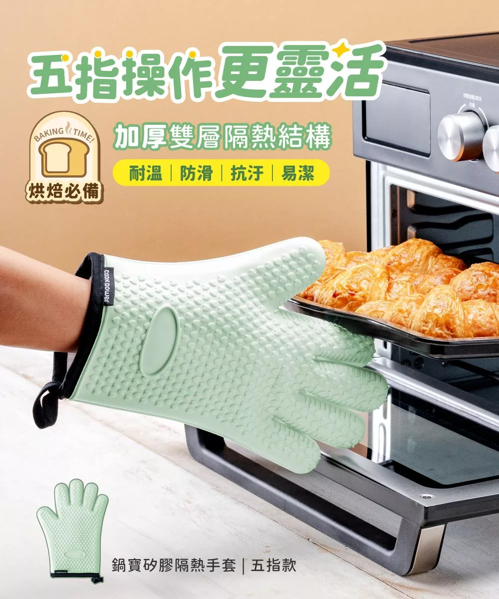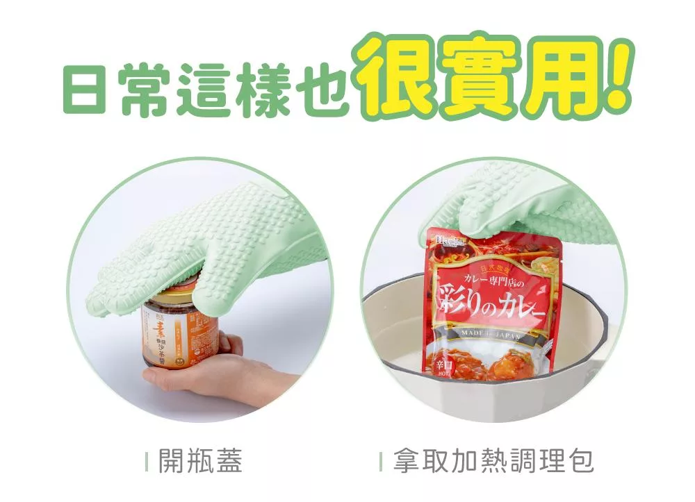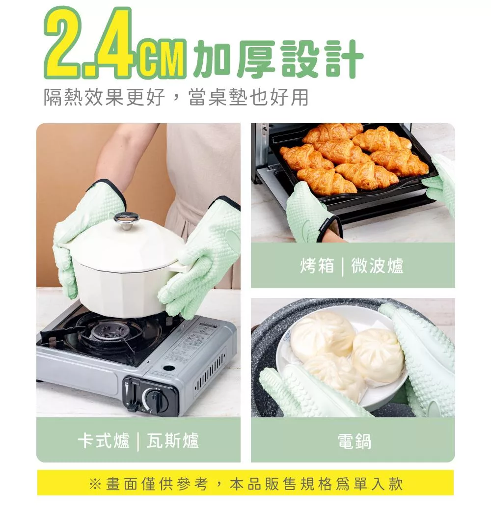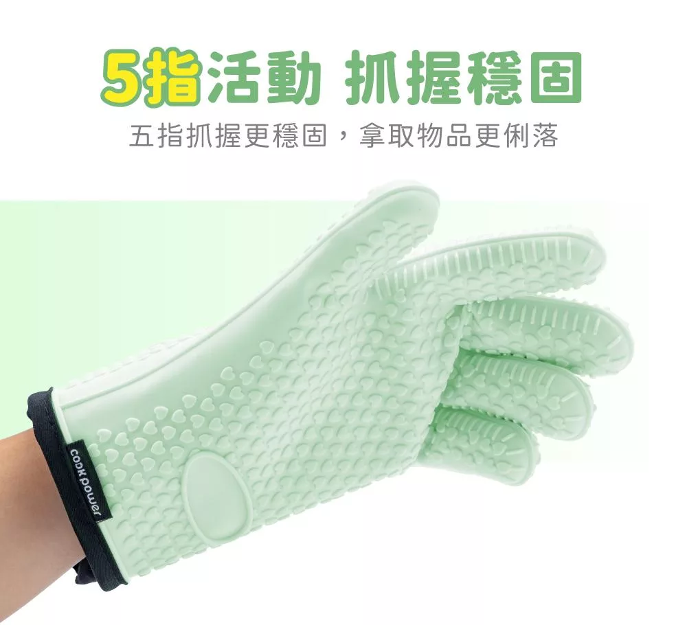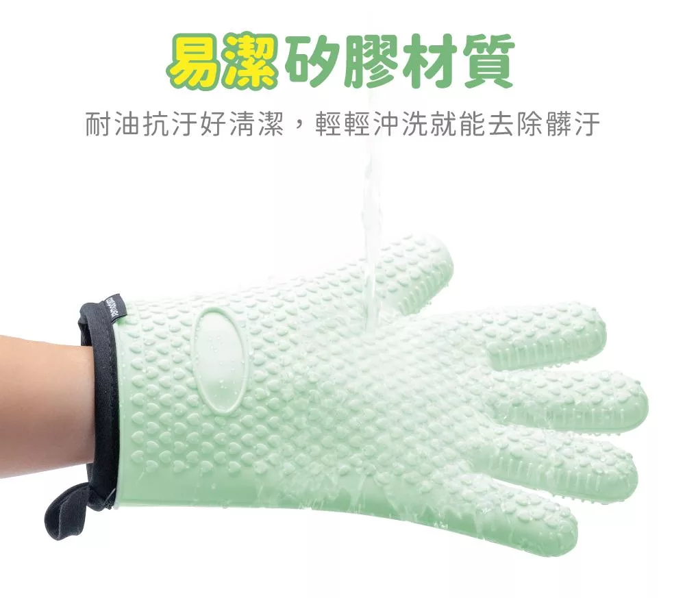 北歐風 耐熱矽膠隔熱手套 廚房防燙手套 (2入) 碧綠