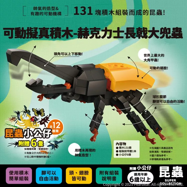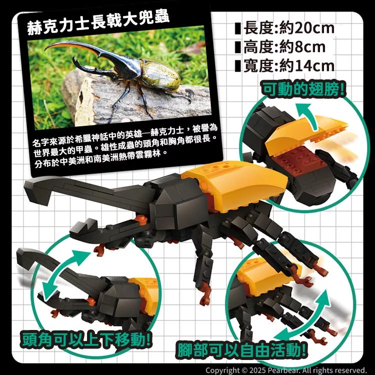 日本《Silverback》 -- 可動擬真積木-赫克力士長戟大兜蟲 ☆