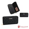 Roberto Mocali - 義大利諾貝兔輕奢菱格小香風雙層拉鍊羊皮長夾 黑色