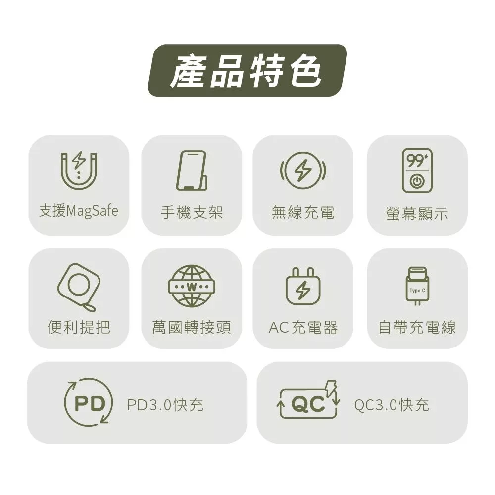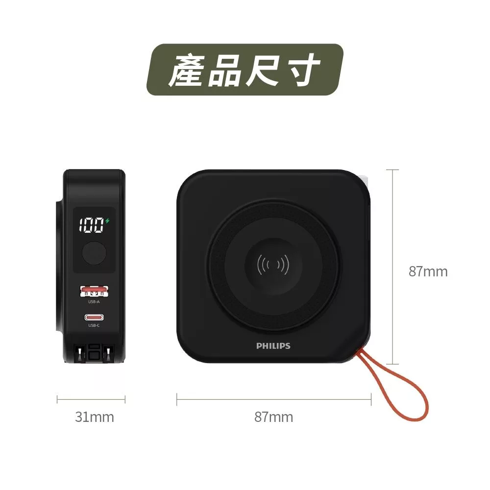 【Philips 飛利浦】10000mAh多功能十合一螢幕顯示行動電源 磁吸/自帶雙線/無線/手機支架 4色可選 (DLP4347C) 黑色 (DLP4347CB)