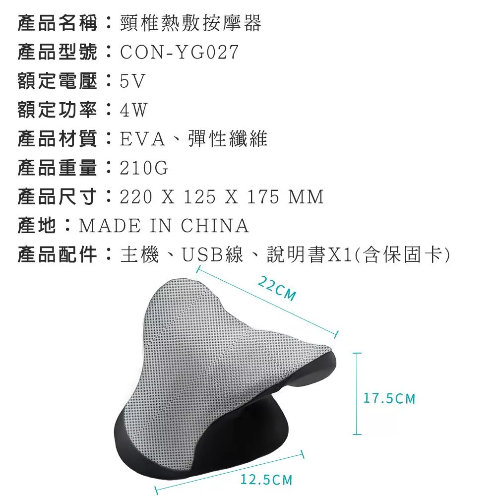 Concern康生 4D魔力寶貝溫熱揉捏按摩枕 CON-1288 無 牛仔藍