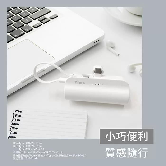 【PHILIPS】飛利浦 口袋行動電源(TypeC) 四色-DLP2550C(小支架充電) 白色